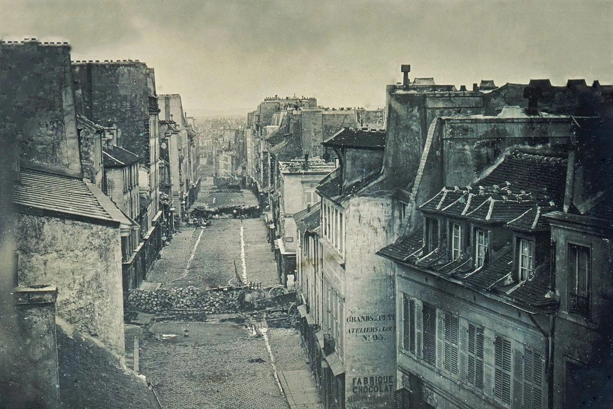 Pour la première fois, la photographie — encore balbutiante — sert à documenter une insurrection. Des daguerréotypes montrent des rues de Paris après les combats, tandis que des gravures diffusant des images plus dramatiques, la rue après l’assaut de l’armée, où les soldats achèvent les blessés, fusillent les prisonniers et parfois aussi les habitants des maisons voisines.