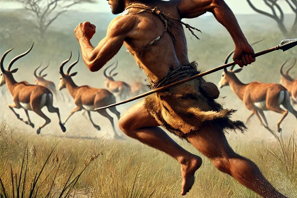 Alors que le chasseur est rafraîchi par sa sueur, l’antilope, poursuivie sans relâche, n’arrive pas à éliminer son surcroît de chaleur.