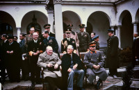 Mais quelques mois plus tard, en juillet 1945, lorsqu’une nouvelle conférence réunit les Alliés à Potsdam, l’attitude des États-Unis change complètement dès que Truman, le nouveau président des États-Unis après la mort de Roosevelt, est informé de la réussite de l’essai nucléaire à Los Alamos. Le 17 juillet, Stimson, alors secrétaire à la Guerre des États-Unis, transmet une feuille portant les mots « Bébés heureusement nés » pour annoncer la réussite de l’essai de Los Alamos. Prévenu, Churchill témoignera bien des années plus tard : « nous n’avions plus besoin des Russes », « la fin de la guerre contre le Japon ne dépendait plus du poids de leurs armées », « quelques jours plus tard, j’écrivis à Eden : “il est clair que les États-Unis ne désirent plus voir les Russes prendre part à la guerre contre le Japon” », « nous paraissions être soudainement entrés en possession d’un moyen (…) d’ouvrir des perspectives beaucoup plus riantes en Europe » [2].