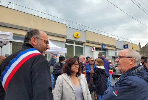 Les menaces sur la Poste et son organisation, il y en a assez. C'est ce qu'ont clairement exprimé, ce lundi matin 6 mai, sept maires de communes du Pas-de-Calais autour d'Avion. Dès 9 h, ces élus ont appelé à un regroupement devant le bureau de poste de Fouquières-les-Lens et ont pris la parole en fin de matinée. Ils ont été rejoints par la sénatrice et le député (PCF) du Pas-de-Calais Cathy Apourceau-Poly et Jean-Marc Tellier.